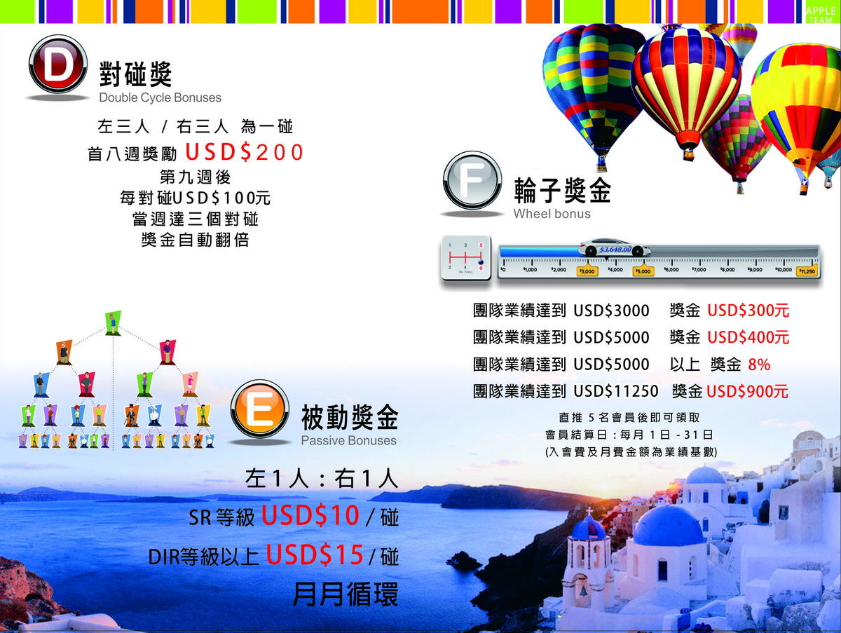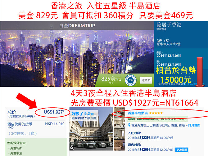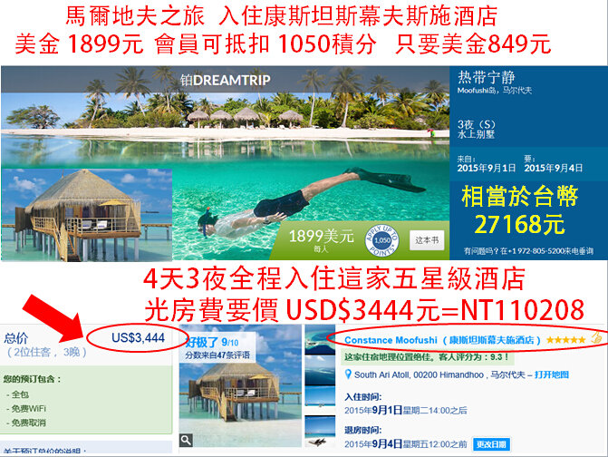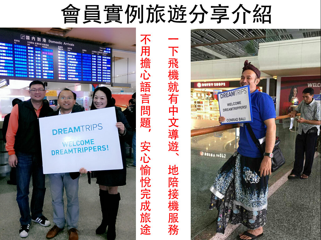 因为我们所提供的并不需要他们放弃任何现用的:我们也是提供那些知名的航空公司,我们也是提供那些知名的酒店,依然是平时航行中的邮轮,依然是平时所用的同样的供应商。我们拥有的,每个人都已经想要了,你根本不必去推销的,这优点是其他产品根本不存在。