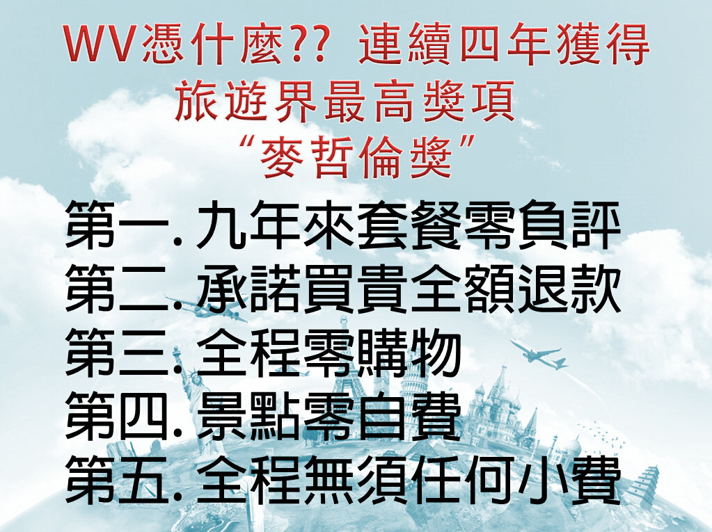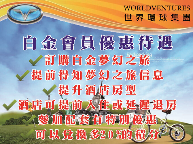 成为WV梦幻之旅会员不但可以享受全球最低价旅游,还可以免费旅游及代理全球以下所有旅游产品包括: