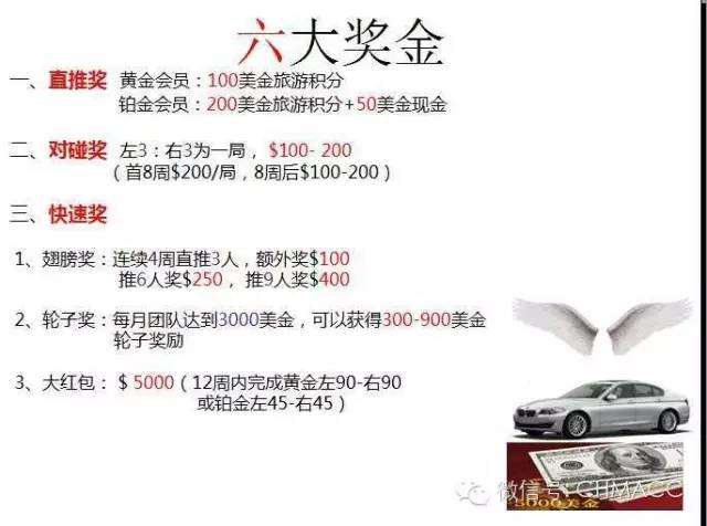 ★保底被动收入奖金。当晋升到RMD区域行销总监后可获得每月1000美金的车子奖,晋升到IMD每月可拿1500美金,没有业绩要求。