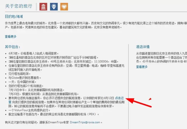 订购完套餐,然后预订机票,订购好机票接下来在套餐里面的“包含项目”中找出航班接送服务那个条款,如图红箭头所示:点击这里,进入到提交航班行程里面。