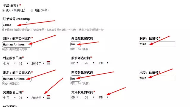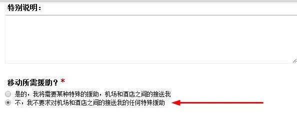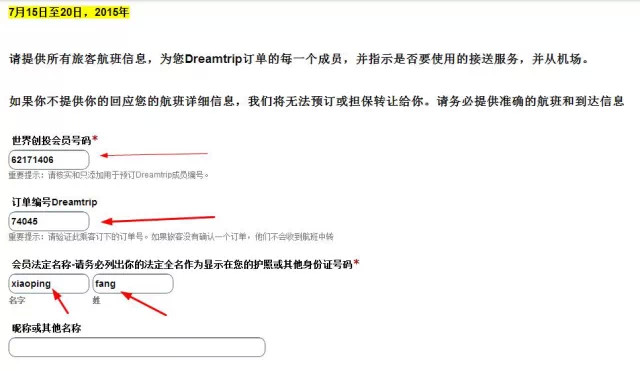 这里的昵称不是必填项目,在机场接送服务一栏里面选择第一个:是的,我将使用接送服务项目。后面有几个成人就选择几个。