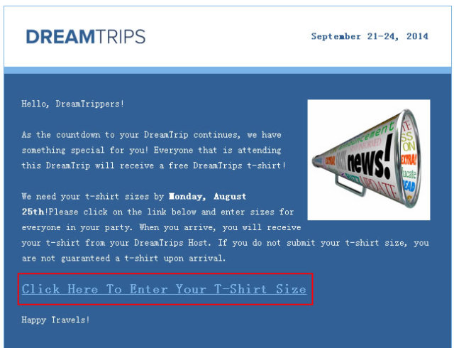 WV会员参加每个旅游套餐都会有免费的T恤赠送,通常在出行前40天左右,会收到电子邮件提示领取,待参加旅游套餐时会在会员入住时直接送到客房。