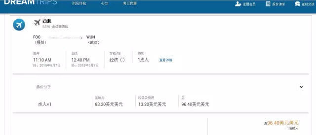 本案例即:96.4-49.4X1.5=70.5美元,相当于最终仅花了25.9的旅游币坐了一次飞机,即使你没有旅游币花了等值的美元,只合人民币160元而已!