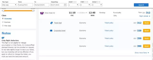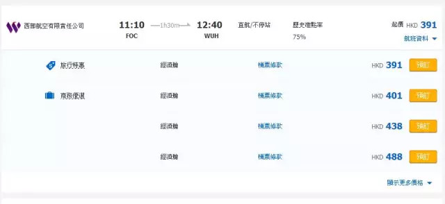 ▼在国内某网站看到的同日期、同时间、同航线、同舱位的价格相差较大,考虑到索赔时需要提供截图,特意选择该网站的英文版本进行截图,此处显示的人民币价格为312--390元。\