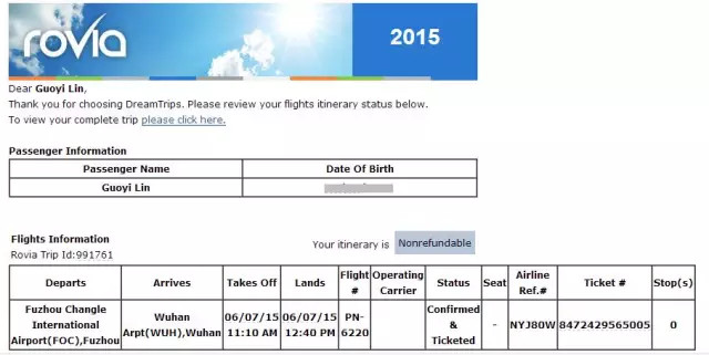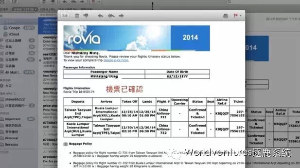 ▼订购出票成功,又来了一封邮件,确认了航班的信息。