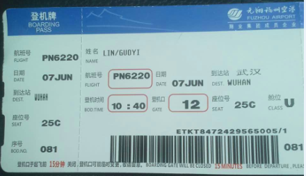 ▼当天到达福州长乐机场,在值机柜台出示护照,很快换到登记牌,顺利到达目的地:武汉。