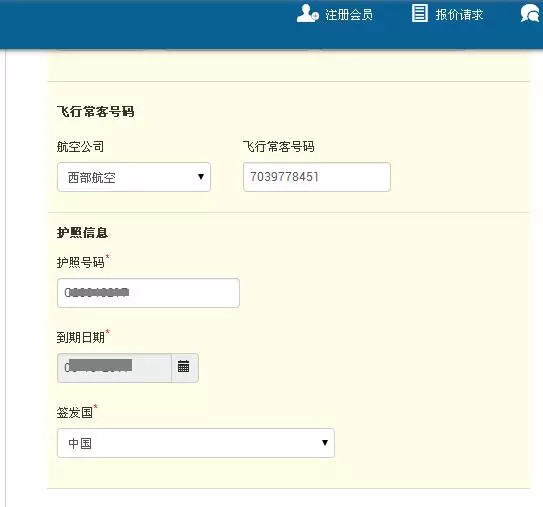 ▼是使用护照号码进行登记的(下次尝试用身份证登记是否可行)