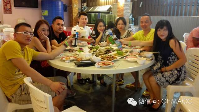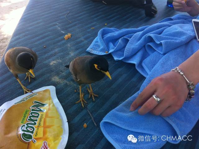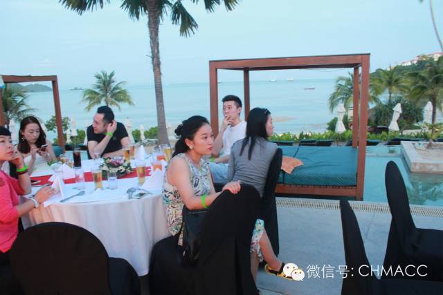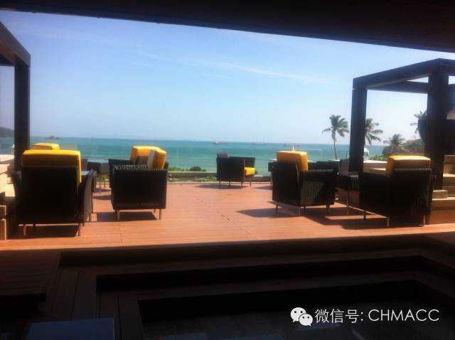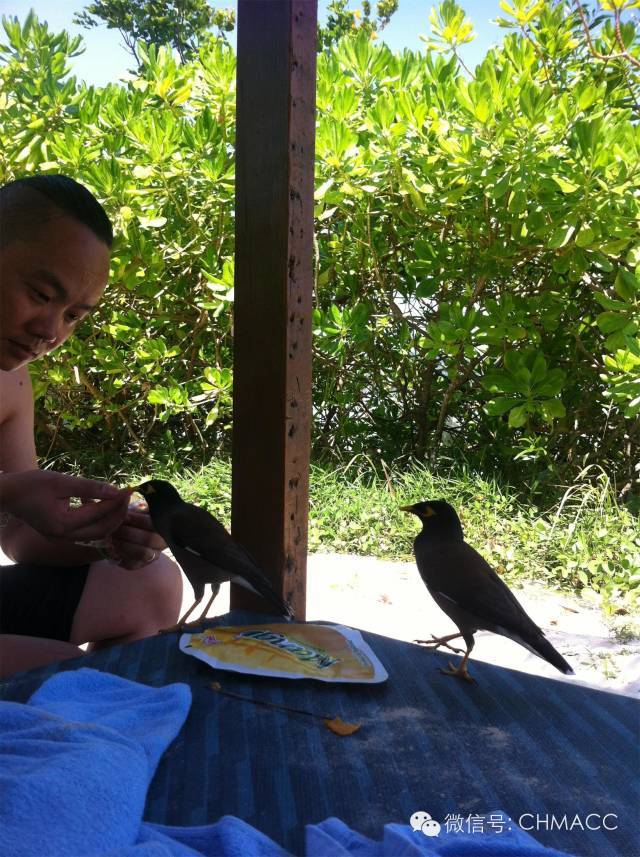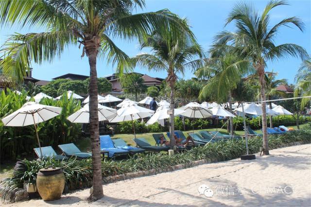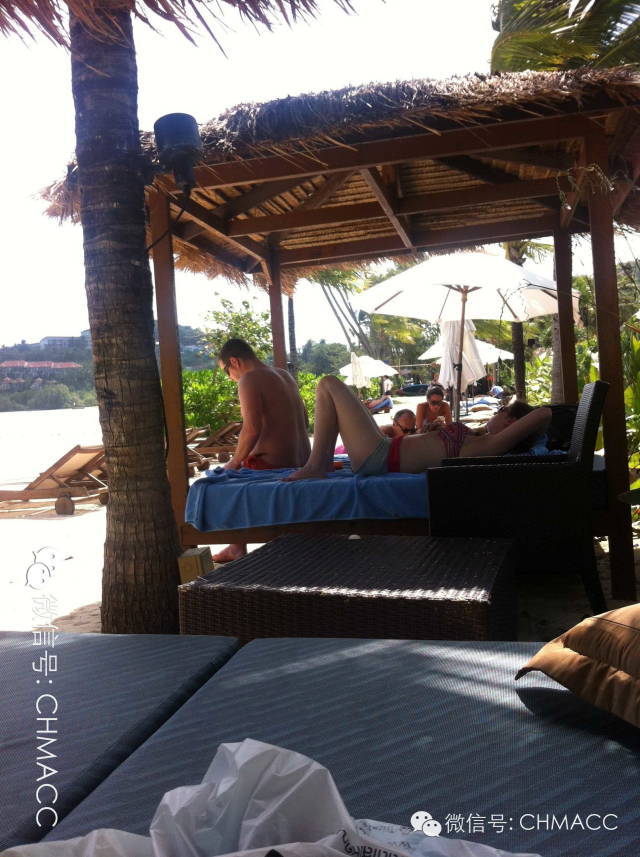 这是在岛上由公司包场的一块休息区域,看到蓝色牌子了吗?