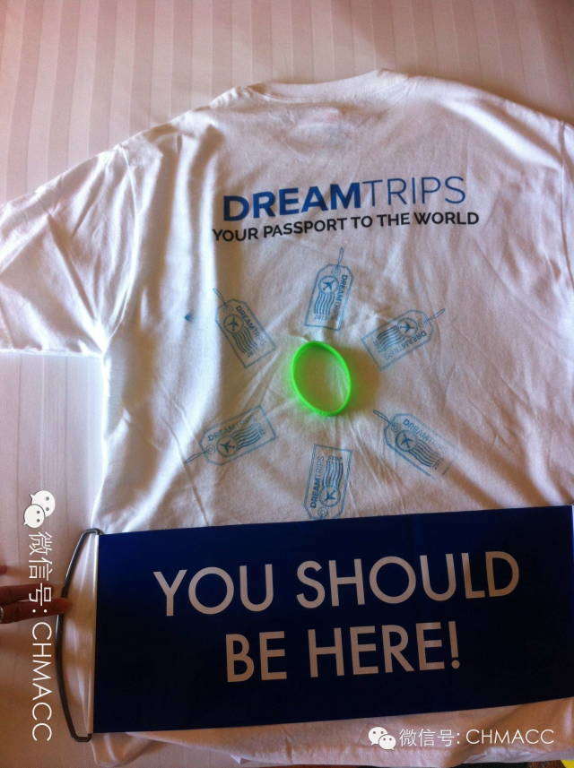 每个参加dreamtrips的人都会收到一份行程单、一件T恤、一个手环和一个标志性的蓝色小旗。还有一个当次旅行特制的印章 印在T恤上,当然你也可以印在脸上,呵呵,有看到另外一个会员自己带来的T恤上已经印了5个不同路途的印章。