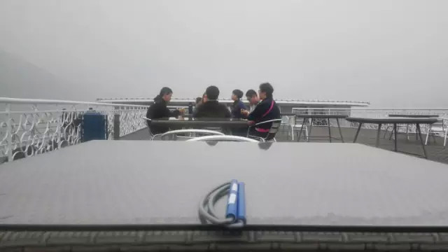 上午休闲时间,又是睡到自然醒,早餐过后在顶层夹板上晒晒太阳、吹吹风、打打牌…