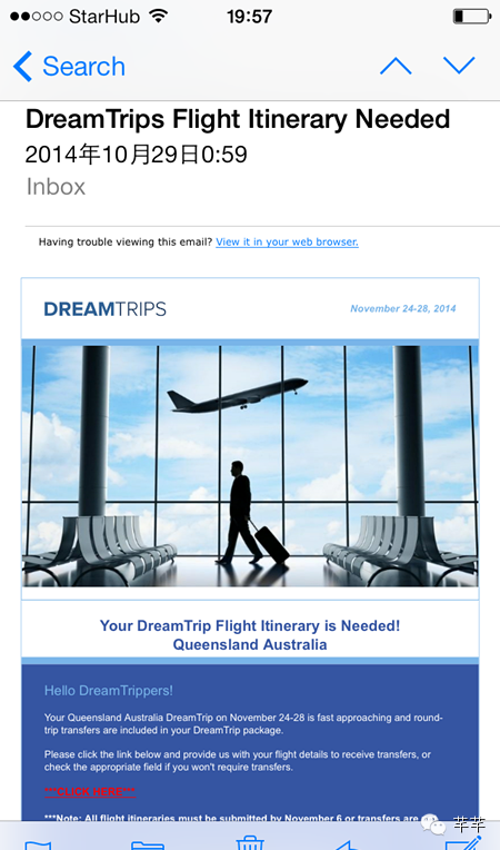 出发前一个月,每位会员会收到一个邮件,需要大家填写抵达和出发的确切时间和航班信息,以便公司安排接送机(如果你的行程本身是不含此服务的除外)