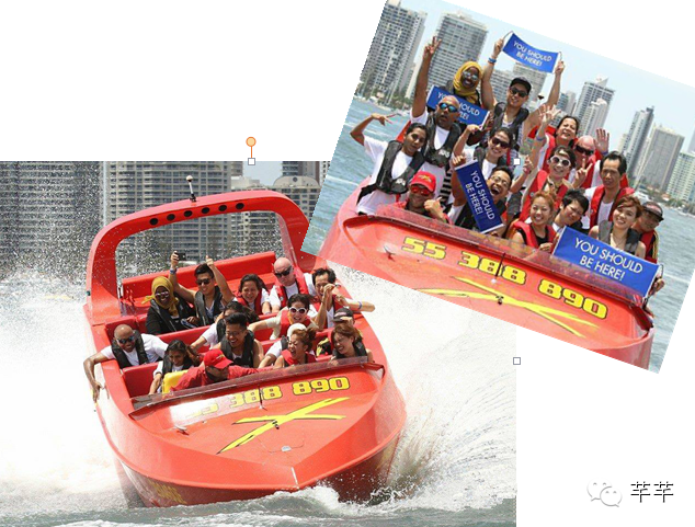 我们这一船都是成人,所以船长开得格外“野”,大家都湿身了。所有的人都在尖叫,体验速度与激情,这种快乐是用钱买不到的。好在登船的地方就在酒店的后岸,有些人直接跳进泳池游泳啦。